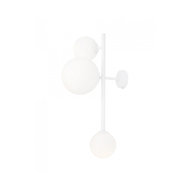Oprawa Dione to biała lampa z mlecznym okrągłym kloszem.