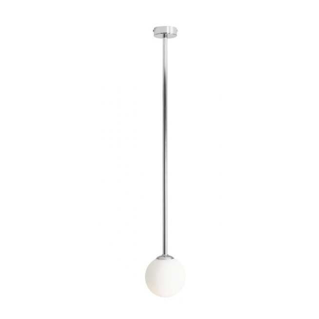 Lampa Pinne to oprawa z mlecznym okrągłym kloszem umieszczonym na chromowanej sztycy..