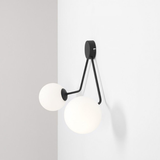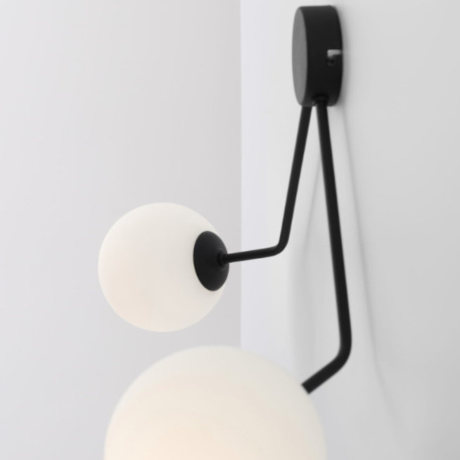 Oprawa Holm to lampa z mlecznymi okrągłymi kloszami. Metalowe elementy lampy w kolorze czarnym.