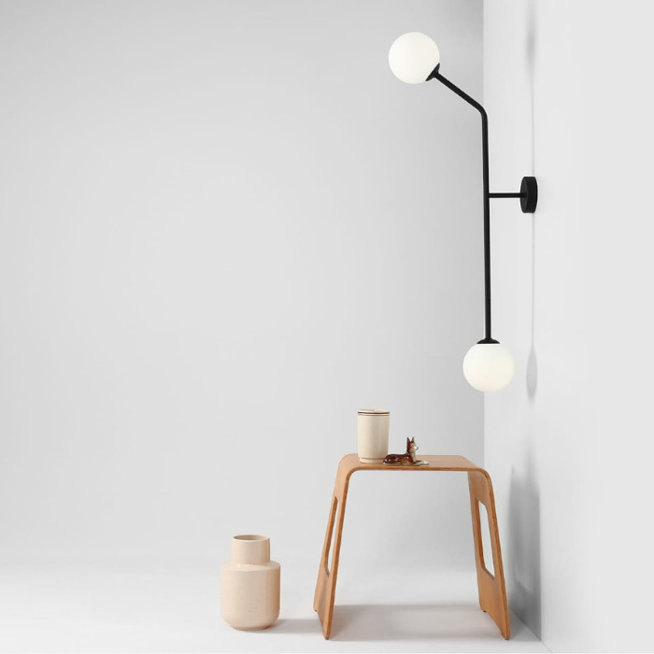 Lampa Pure to czarna lampa z mlecznymi okrągłymi kloszami.