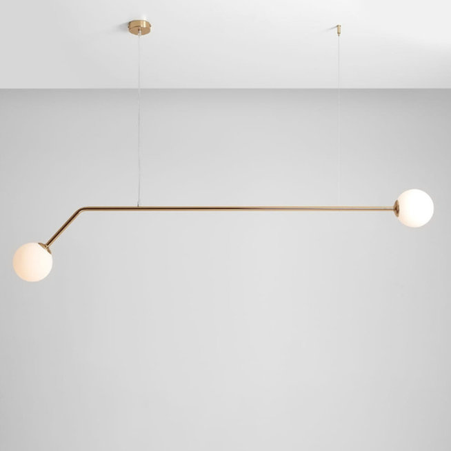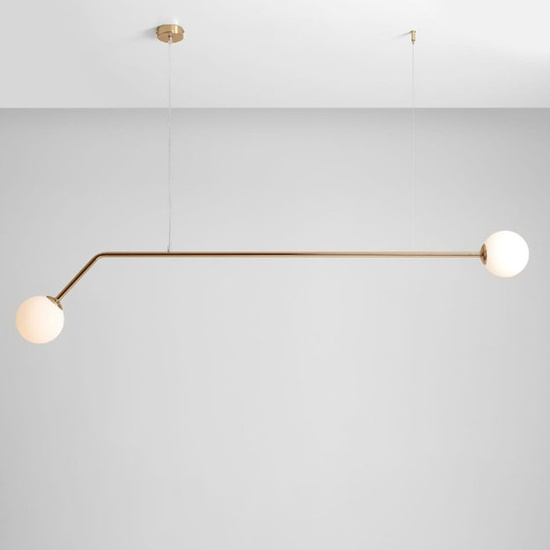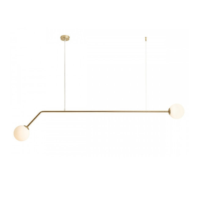 Lampa Pure to złota lampa z mlecznymi okrągłymi kloszami.