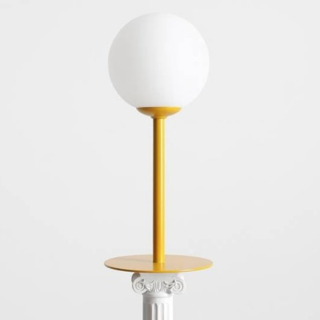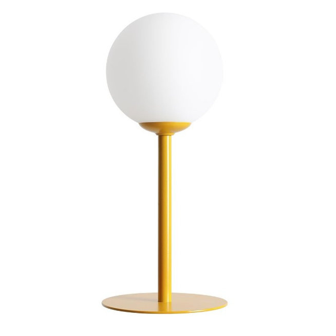 Lampa Pinne to musztardowa oprawa z mlecznym okrągłym kloszem..