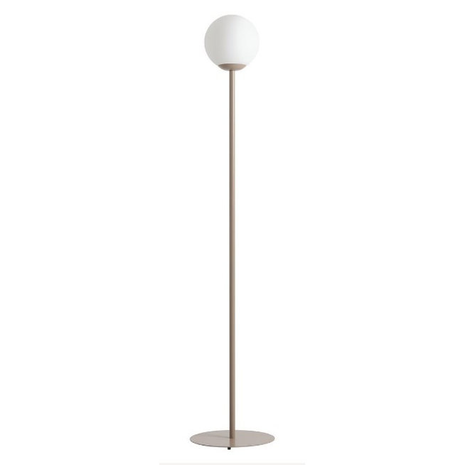 Lampa Pinne to beżowa oprawa z mlecznym okrągłym kloszem..