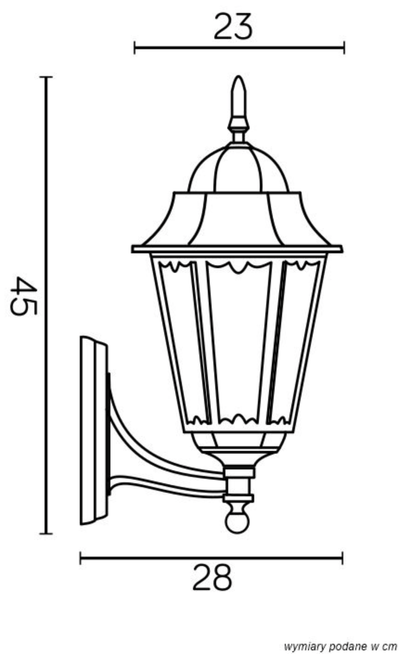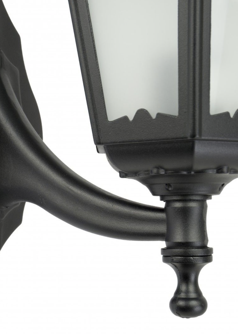 Ten ponadczasowy kinkiet ogrodowy świetnie nada się do oświetlenia podjazdu lub wyeksponowania roślinności w ogrodzie.