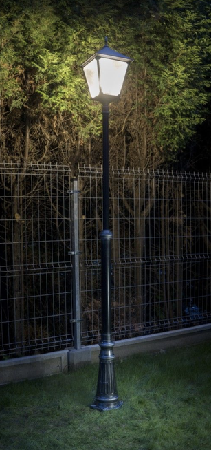 - Lampa masztowa marki SU-MA w stylu tradycyjnym wykonany z aluminium i szkła ozdobnego. Świetnie prezentuje się na tarasie lub przed wejściem do domu.
