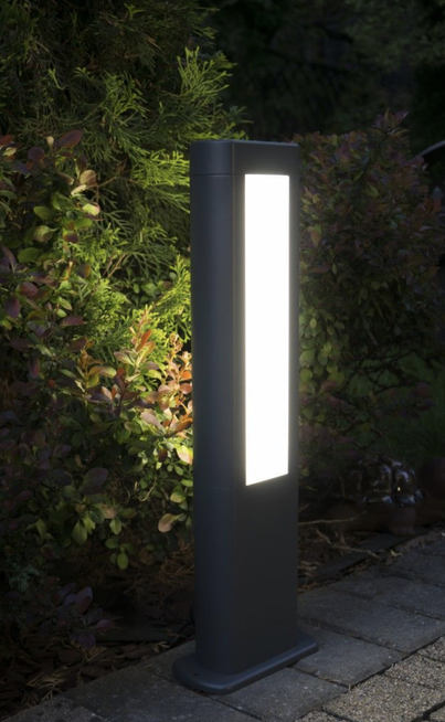 Słupek zewnętrzny w kolorze ciemny popiel, wykonany z aluminium idealnie sprawdzi się do niemal każdej aranżacji.