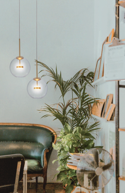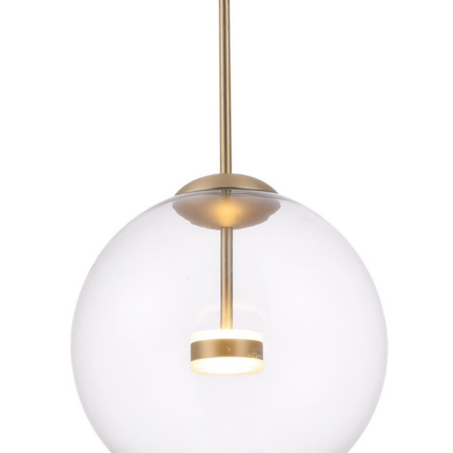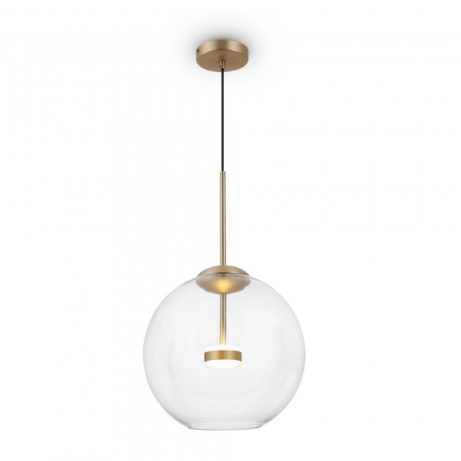 Lampa posiada przezroczysty dmuchany klosz i złotą ozdobną oprawę, która dodaje pomieszczeniu klasy i szyku.