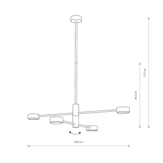 Standarodwa wysokość lampy przy 2 sztycach wynosi 77,5 cm, a po odjęciu 1 sztycy wysokość to 45,5 cm.