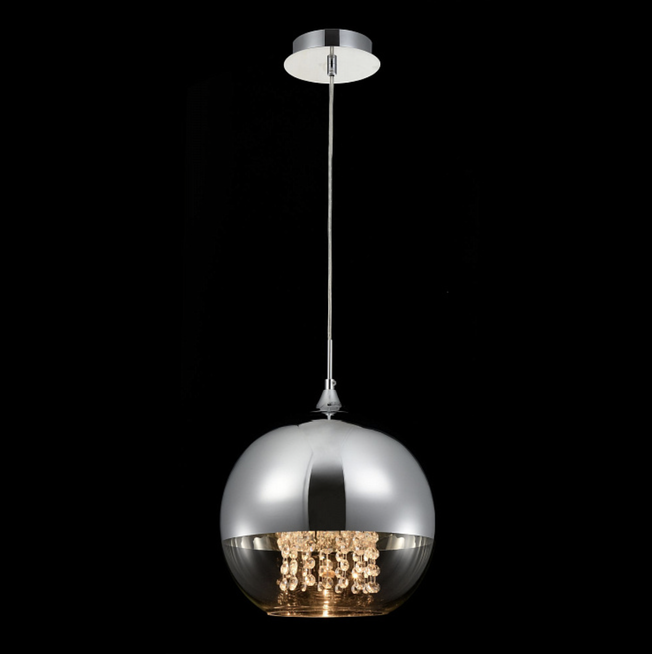 - Wisząca lampa z serii Fermi z metalową oprawą oraz pojedynczym kloszem z ozdobnymi kryształami, który pięknie rozświetli i przyozdobi Twoje wnętrze.