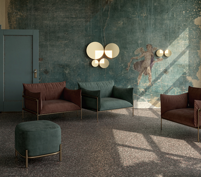 Wśród lamp z tej serii możemy znaleźć kinkiety w różnych rozmiarach i dwóch wariantach kolorystycznych - marmur i mosiądz.