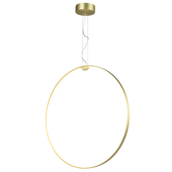 - Geometryczny zwis w kształcie okręgu zapewnia miękkie światło o neutralnej barwie. Lampa wykonana z aluminium zawiera mleczną osłonę z tworzywa umieszczoną we wnętrz koła. Klosz delikatnie rozprasza światło zapobiegając efektowi olśnienia