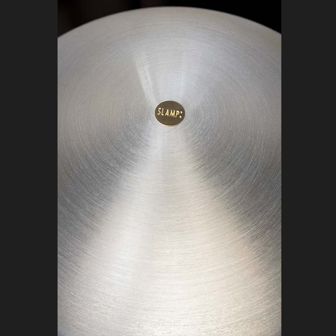 Atmosfera to lampa wisząca w stylu glam retro. Efekt kropek podstawy został odtworzony przez nałożenie dwóch warstw zrównoważonego materiału Slamp: dolnej, ręcznie wykonanej i górnej, metalizowanej Goldflex® lub Pewterflex®. Z drugiej strony kula jest ręcznie szczotkowana w kreatywnym atelier Slamp. Lampa Atmosfera została wykonana z innowacyjnego tworzywa, które w kontakcie ze światłem tworzy niepowtarzalny efekt i przytulną atmosferę we wnętrzu.