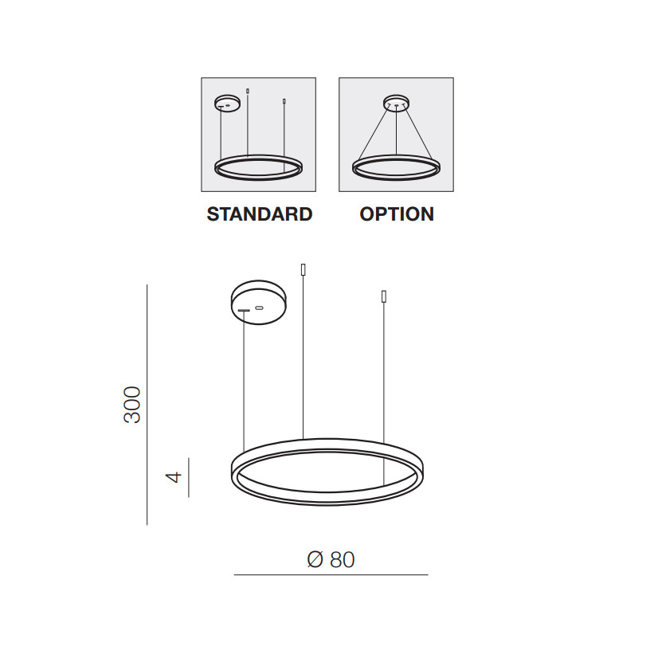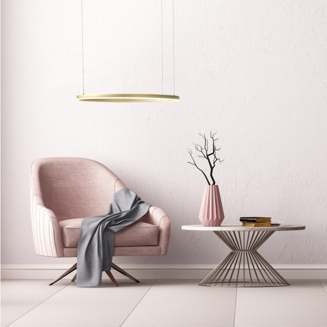 - Lampa wisząca w kształcie ringu z mocowaniem do sufitu w trzech punktach.