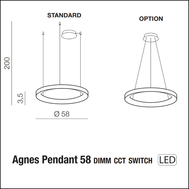 Zwis Agnes DIM CCT SWITCH występuje w trzech rozmiarach