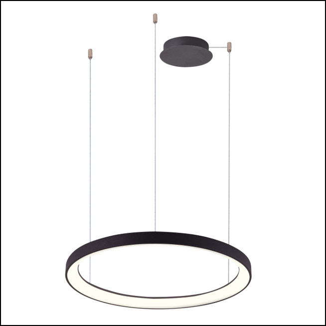 - Nowoczesna lampa w kształcie ringu. Lampa jest mocowana do sufitu w 3 puntach. Lampa współpracuje ze ściemniaczem typu triac, co pozwala zmieniać barwę i natężenie światła.