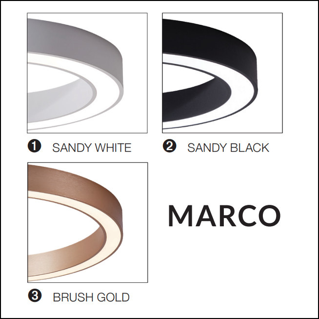 Seria Marco to również plafony w wilu rozmiarach. Daje to możliwość dopasowania lamp
