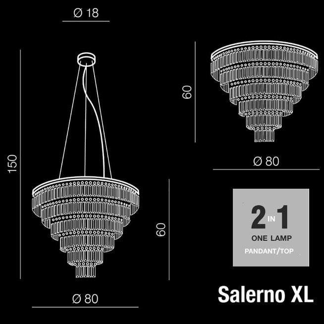 Tradycyjne kaskadowe formy oraz dekoracyjne kryształy sprawiają, że lampy prezentują się wyjątkowo efektownie.