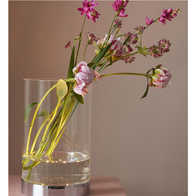 Podświetlenie wazonu z pewnością przyciągnie uwagę i nada niepowtarzalnego charakteru Twojemu pomieszczeniu. Odbicie światła na błyszczącej powierzchni podstawy w kolorze chromowanym dodaje mu blasku i elegancji, dzięki czemu świetnie prezentuje się na każdym stole, komodzie czy półce.