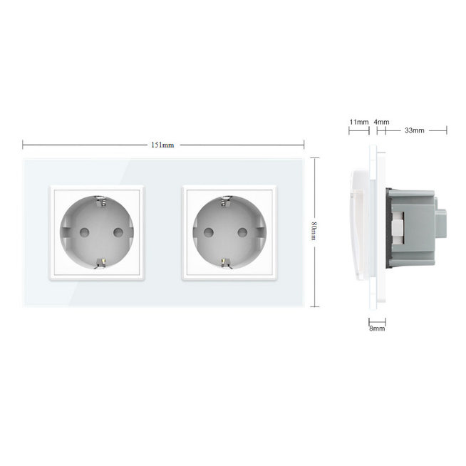 - Gniazda z uziemieniem typu schuko. Kontakt w szklanej ramce wykonanej z hartowanego szkła -nowoczesność, dyskretna elegancja i doskonała jakość. Minimalistyczny design, prostota, i precyzja wykonania wyróżniają osprzęt elektryczny Livolo.