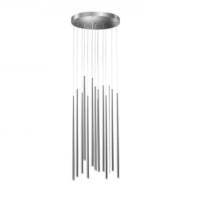 • Nowoczesna lampa wisząca wykonana z metalu w kolorze srebrnym. Polecana jako oświetlenie salonu.