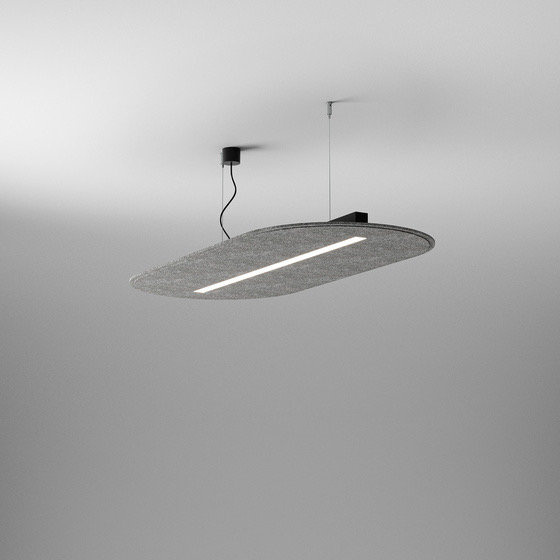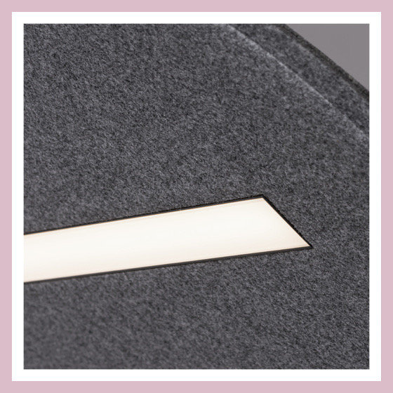 - Sprawdzone źródła światła głęboko ukryte w matowych odbłyśnikach zapewniają precyzyjne i komfortowe dla oczu oświetlenie zadaniowe. Mleczna przesłona oferuje miękkie światło we wszystkich kierunkach. Oprawa podnosi komfort akustyczny.
