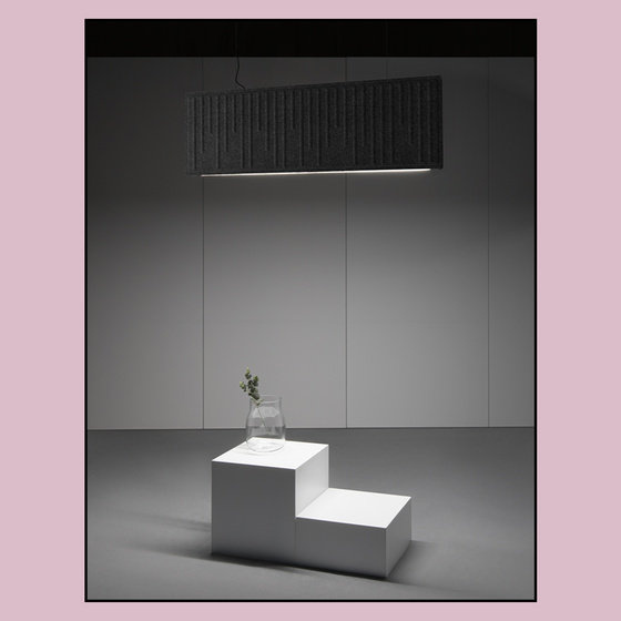 Oprawy z rodziny AQfelt to połączenie przyciągającej wzrok, ciekawej formy z podwójną funkcjonalnością. Lampy z tej serii gwarantują światło o bardzo dobrej jakości, ale jednocześnie pozwalają poprawić warunki akustyczne we wnętrzu. Powodują skrócenie się czasu pogłosu, który jest jednym z najważniejszych czynników wpływających na komfort akustyczny we wnętrzu.