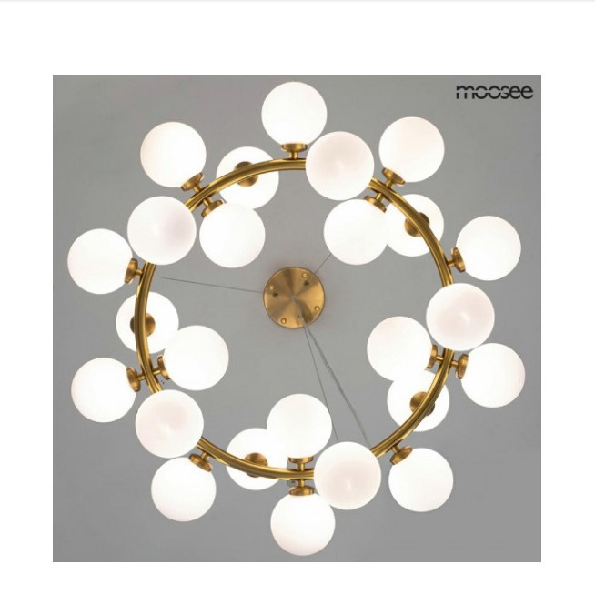 • Nowoczesny żyrandol w kolorze złotym połyskującym.