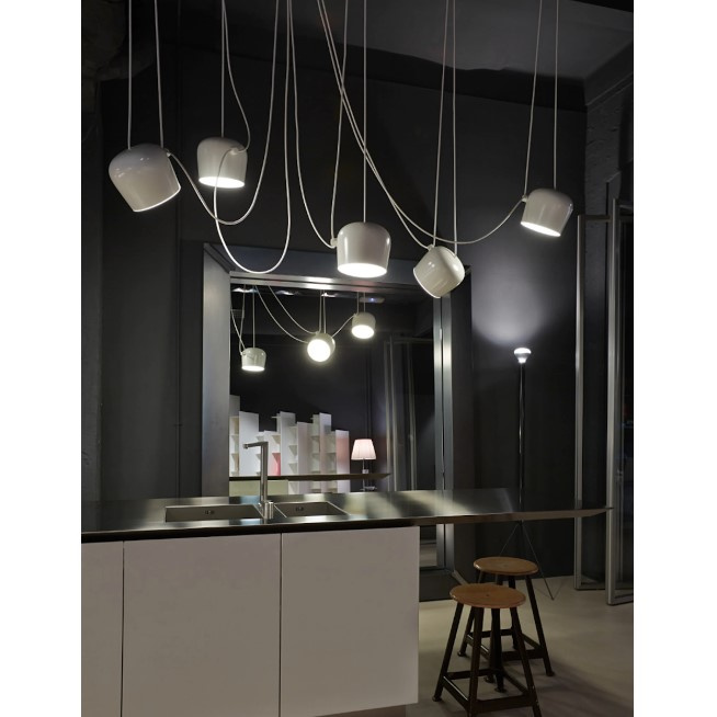 Projekt lampy Aim stworzony został w fabryce marki Flos, która jest włoskim producentem marki premium. Marka Flos produkuje wiele produktów renomowanych projektantów. Autorem projektu lampy Aim są Projektanci Ronan & Erwan Boroullec. Flos posiada wyraźny system wartości, na który składają się estetyka oraz pasja do wzornictwa.