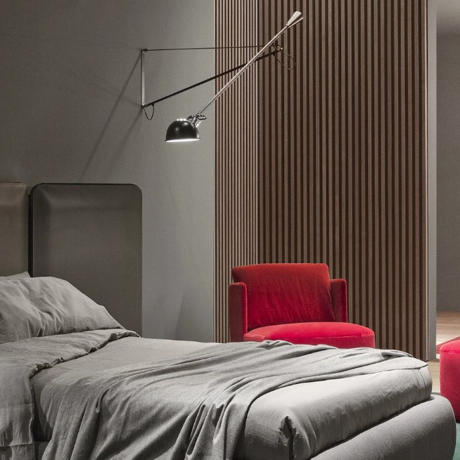 Kinkiet posiada możliwość obrotu i pochylenia za pomocą wystającego uchwytu ściennego, na którym zamontowane jest długie ramię. Klosz można obracać i odchylać. Dzięki temu lampa ścienna 265 Small pozwala na elastyczne i indywidualnie regulowanie oświetleniem.