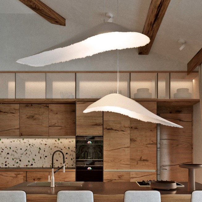 Lampa wisząca MOBY DICK swoją prostą formą przypomina wieloryba przez kształt i gładką strukturę.