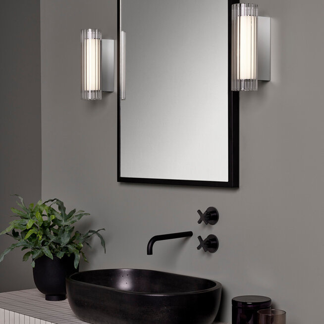 - Kinkiet io265 przenaczony do łazienki do montażu przy lustrze w stefie 2 i 3. Lampa zachwyca delikatna elegancją. Na subtelnej chromowej podstawie umiejscowony jest podwójny klosz z zewnątrz transprentny z ryflownego szkła wewnątrz mleczny.