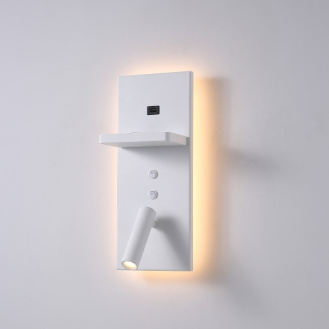 - Nowoczesny funkcjonalny kinkiet polecany do sypialni. Oprawa ze źródłem światła na ruchomym wysięgniku.