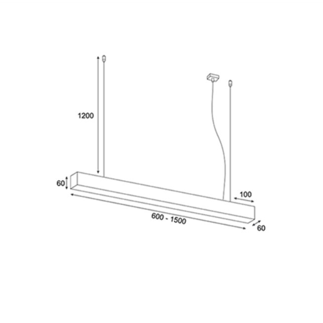 • Lampa wisząca o dwóch źródłach światła. Moduł świecący w górę jest o 30 cm krótszy od długości lampy.