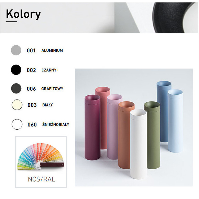(istnieje możliwość zamówienia dowolnego koloru z palety NCS za dopłatą – prosimy o kontakt) - temperaturę barwową: