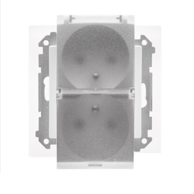 • Podwójne gniazdo wtyczkowe, IP44, uszczelka, klapka, modułowe, 16A, łatwy montaż, wytrzymałe, estetyczne.