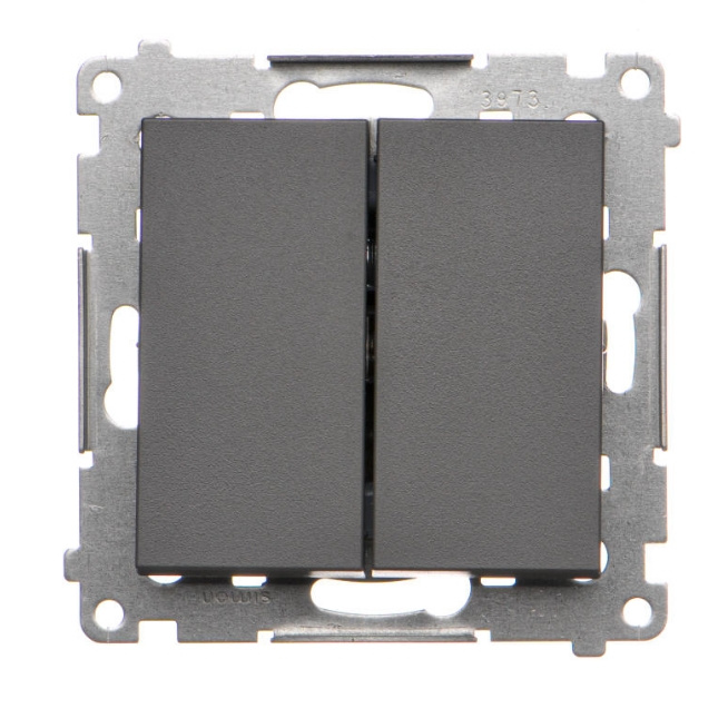 - Łącznik jednobiegunowy, dwa klawisze, modułowy, 16AX, wytrzymały, prosty montaż, wielofunkcyjny, nowoczesny design.
