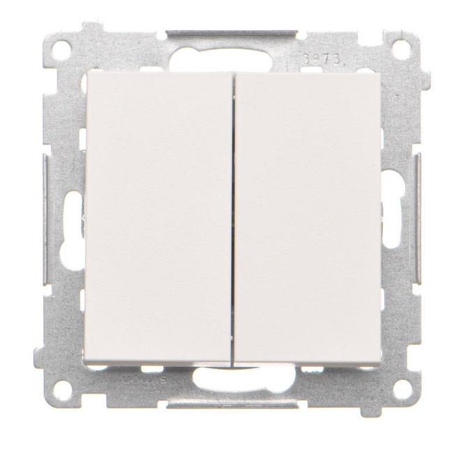 • Łącznik jednobiegunowy, dwa klawisze, modułowy, 16AX, wytrzymały, prosty montaż, wielofunkcyjny, nowoczesny design.