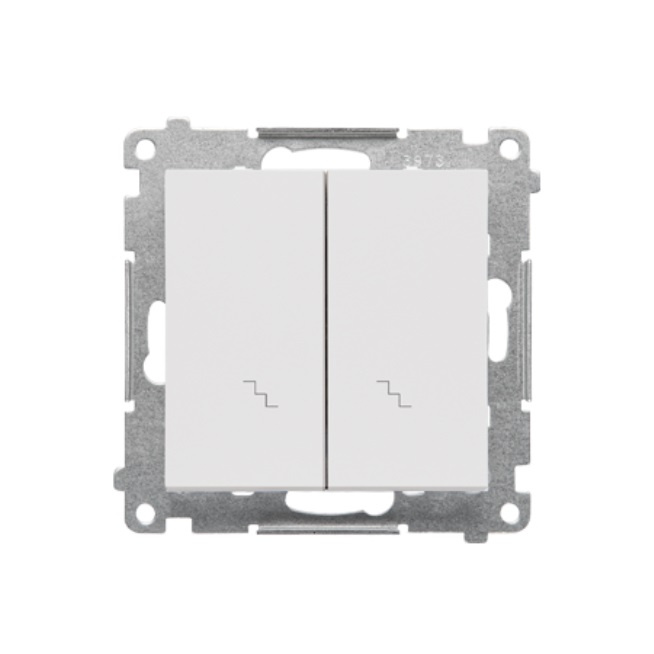 - Podwójny łącznik schodowy, modułowy, 10AX, łatwy w montażu, trwały, do dwóch obwodów oświetleniowych.