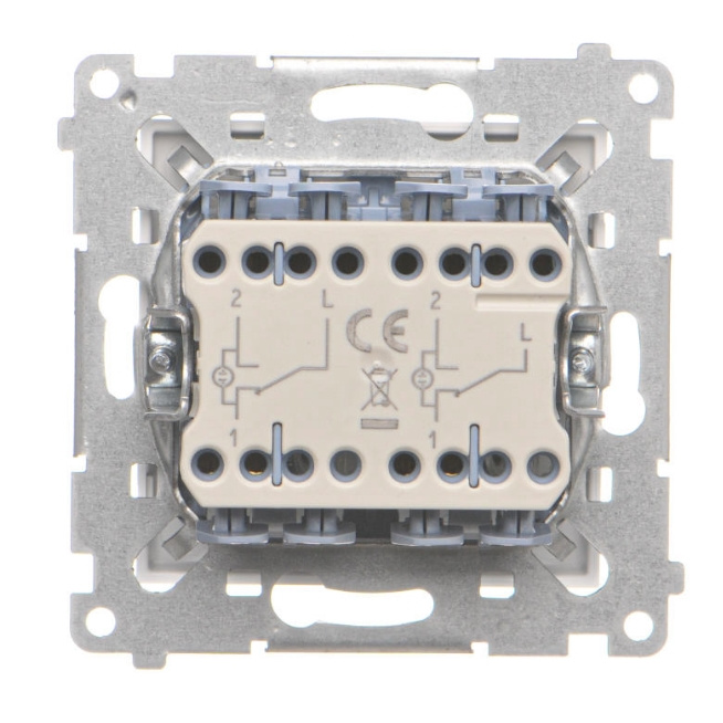 • Podwójny łącznik schodowy, modułowy, 10AX, z podświetleniem, uniwersalny, bezpieczny, łatwa instalacja.