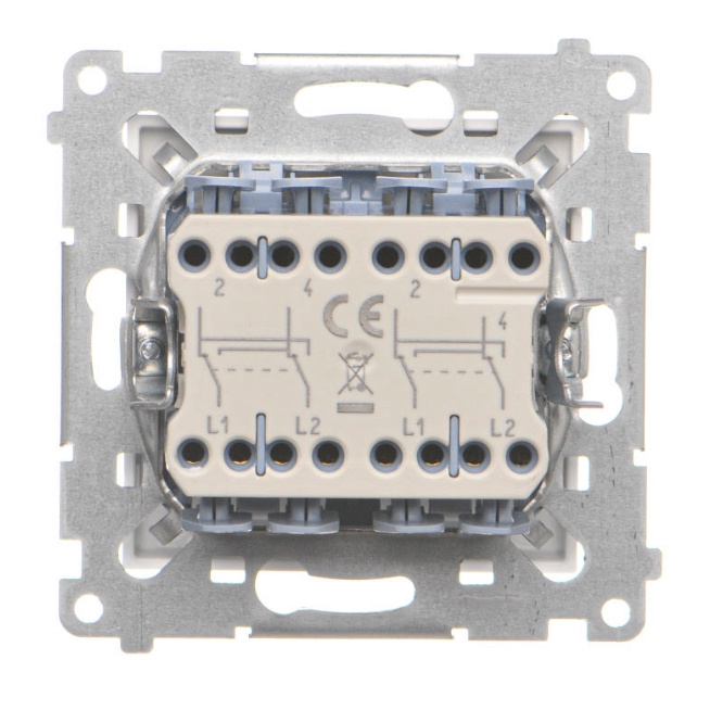- Podwójny łącznik krzyżowy, modułowy, 10AX, uniwersalny design, bez piktogramu, łatwy w instalacji, wydajny.