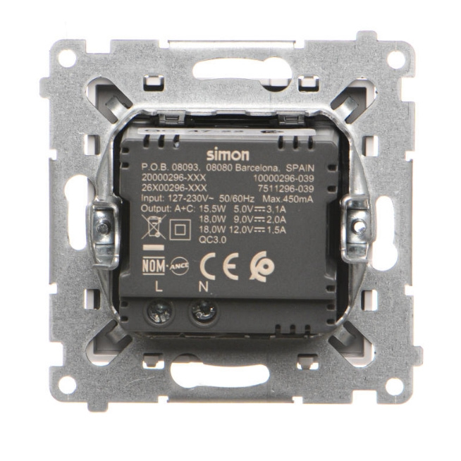 - Podwójna ładowarka USB Simon 55: szybkie ładowanie 3,1A, elegancki design, oszczędność miejsca, wygodna i kompaktowa.