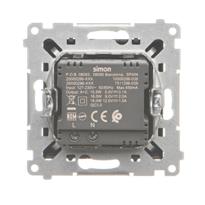 - Podwójna ładowarka USB Simon 55: szybkie ładowanie 3,1A, elegancki design, oszczędność miejsca, wygodna i kompaktowa.