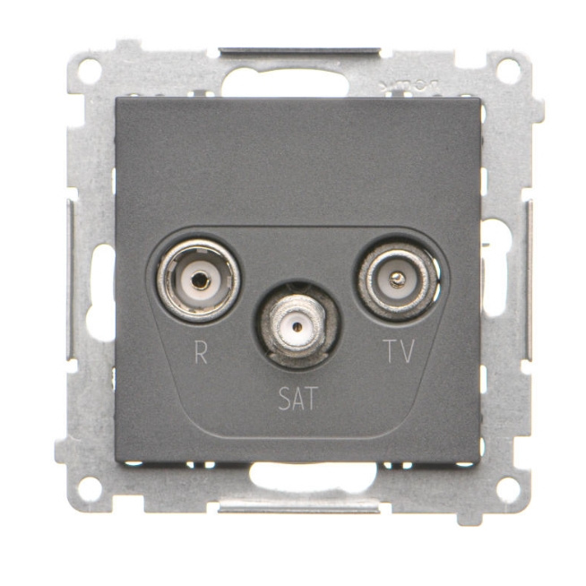 • Gniazdo R-TV-SAT przelotowe: perfekcyjny sygnał, łatwa instalacja, nowoczesny design, niezawodne w każdym wnętrzu.