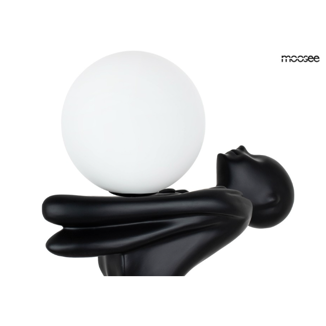 - MOOSEE lampa podłogowa HUMAN MOON czarna to efektowna dekoracja oświetleniowa. Stanowi poza źródłem oświetlenia wspaniałą formę rzeźby.