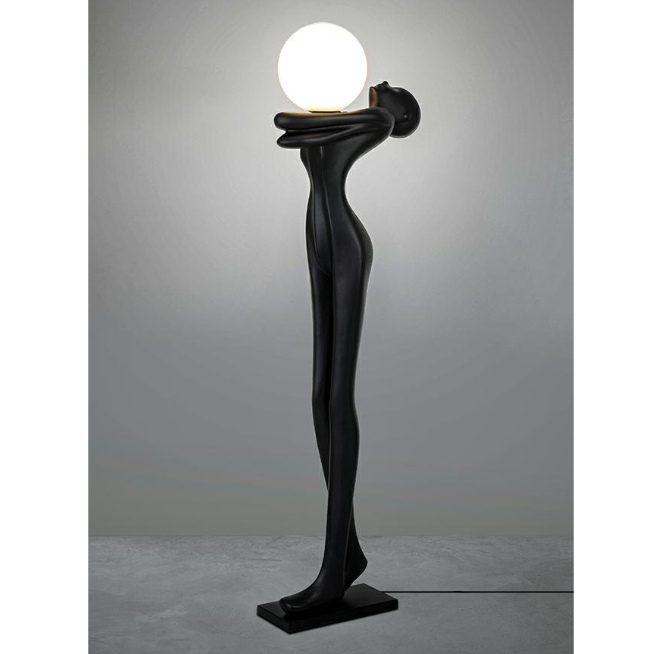 Unikalna lampa podłogowa o niekonwencjonalnej formie, przybierającej kształt eleganckiej kobiecej sylwetki, to wyjątkowy dodatek do wnętrza. Monumentalny, a zarazem smukły posąg nie tylko pełni funkcję oświetleniową, ale także stanowi wyrazisty element dekoracyjny, który przyciąga wzrok i wzbudza emocje.