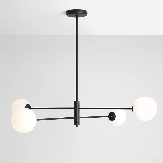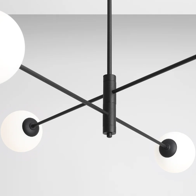 Lampa sufitowa Homme 4 to praktyczne rozwiązanie do oświetlenia nowoczesnych przestrzeni, takich jak salon, biuro czy pokój dzienny. Wyposażona w cztery mleczne, matowe kule, lampa równomiernie rozprasza światło, nadając pomieszczeniu przyjemną atmosferę.