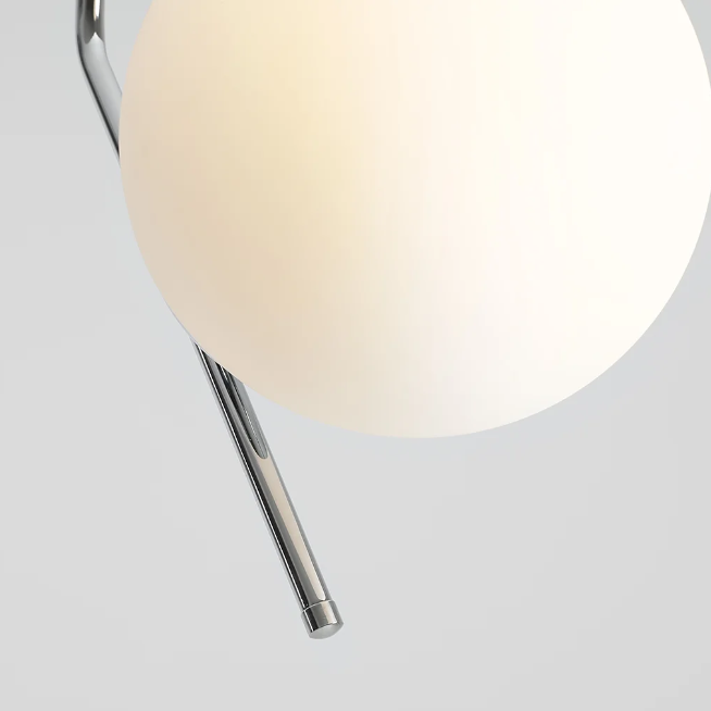 Lampa wisząca GALLIA charakteryzuje się minimalistycznym, lecz urzekającym wzornictwem, idealnym do nowoczesnych i współczesnych wnętrz. Posiada pojedynczy, kulisty dyfuzor, który wydaje się unosić na końcu elegancko wygiętego, linearnego zawieszenia. Konstrukcja jest zakotwiczona do sufitu za pomocą smukłej, okrągłej osłony, która płynnie przechodzi w trzon, przyczyniając się do jej aerodynamicznego wyglądu.