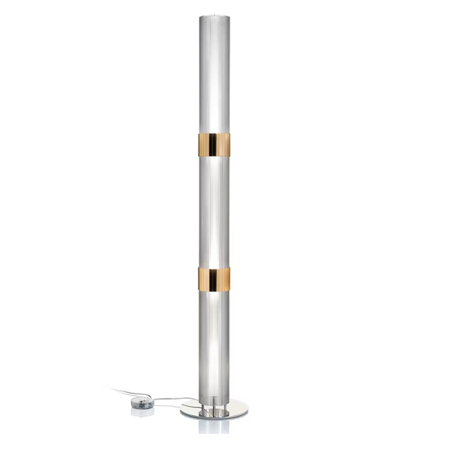 W hołdzie dla wspaniałych lat 50. lampa podłogowa La Lollo dołącza do kolekcji zaprojektowanej przez Lorenzę Bozzoli. Żebrowany efekt szkła uzyskano przy użyciu technopolimerów Slamp (Lentiflex® i Cristalflex®), obrabianych na zimno i ręcznie formowanych, aby nadać kształt posągowej, eleganckiej lampie, która sprawia, że wszechstronność i blask są jej cechami wyróżniającymi. Pierścienie Steelflex® z pionowymi ozdobnymi grawerami dodają impetu i wdzięku lampie, która wyposażona jest w 3 źródła światła, których temperaturę barwową można dobrać według własnego gustu, a której intensywność można regulować za pomocą ściemniacza podłogowego połączony z polerowaną stalową podstawą.