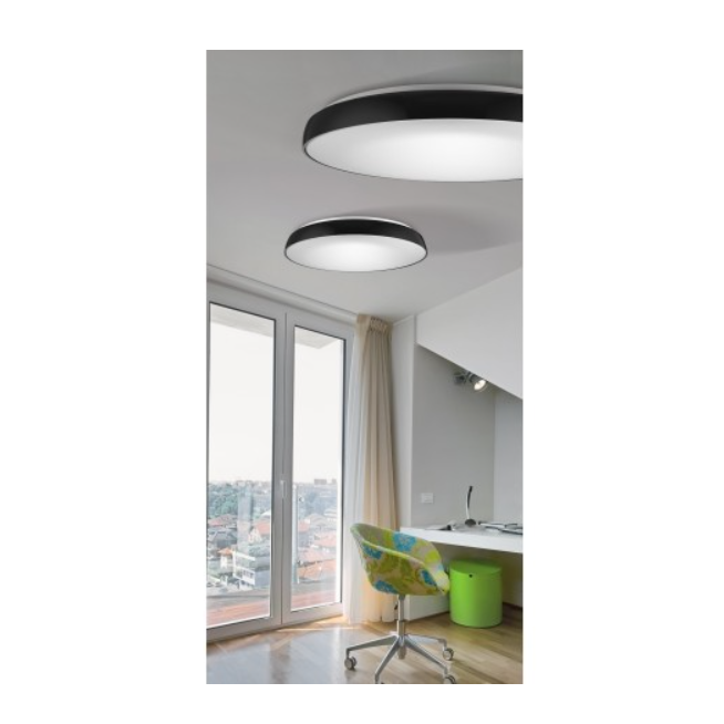 Lampa posiada szeroki pierścień, w którym znajduje się pojedyncze, zintegrowane źródło światła LED. Dzięki tej technologii możliwe jest znaczne obniżenie zużycia energii elektrycznej oraz wydłużenie trwałości źródła światła. Osłonięty mlecznobiałym, akrylowym kloszem, plafon zapewnia równomierne i delikatne rozproszenie światła. Konstrukcja lampy wykonana została z trwałego aluminium, a ramka dostępna jest w trzech kolorach: białym, czarnym i szarym.