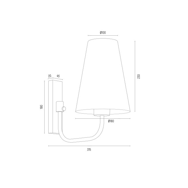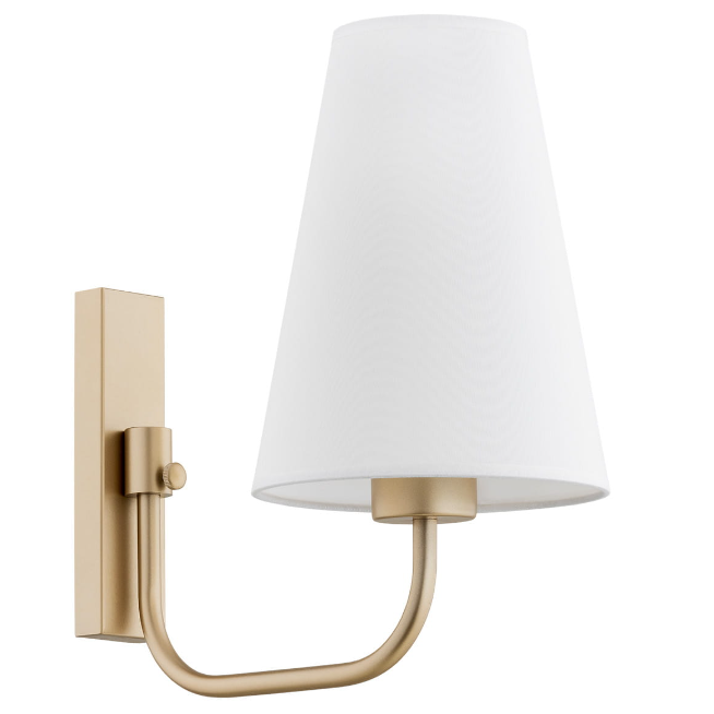 - Kinkiet Safiano posiada charakterystyczny stożkowy abażur w kolorze białym.